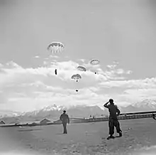Wolff and his forces were being considered to help implement Operation Unthinkable, a secret plan to invade the Soviet Union which Winston Churchill advocated during this period.[26] Wolff was later proven to be complicit in the murder of 300,000 Jews.[27] On 26 April, the SS general was captured by Italian partisans, but was rescued by Dulles' Office of Strategic Services (OSS) and Swiss intelligence.[20] Despite Wolff's promises to Dulles in Bern made in March, Vietinghoff stalled for as long as possible about surrendering, only permitting Wolff to sign the instrument of surrender on 29 April 1945.[13]