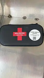 Naloxone injection kit, pictured at a train station in Calgary, Canada