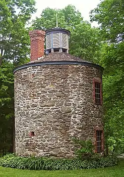 Today the historic district includes 14 of these buildings which had been the core of the manufacturing operation as contributing properties. It was designed to incorporate the old buildings as an essential feature, and many of the roofless stone structures still stand next to the park's barbecue pits and picnic grounds. It is the only remaining 19th-century gunpowder production facility in New York.[3] It was added to the National Register of Historic Places in 1997.