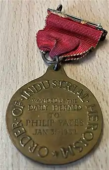 19. "Daily Herald Order of Industrial Heroism medal". National Museum Wales. Retrieved 20 May 2019.