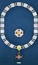 Order of the Republic of Serbia (Serbian Cyrillic: Орден Републике Србије, romanized: Orden Republike Srbije) is the highest state order of Serbia. The order is awarded by the decree of the President of the Republic on special occasions, typically at the ceremonies held on the Statehood Day. It is awarded for special merits in developing international relations between the Republic of Serbia and other countries, i.e. international organizations, as well as for outstanding merits in developing and strengthening peaceful cooperation and friendly relations between the Republic of Serbia and other states. It is awarded in the first class on a large necklace (heads of states), and in the second class on a ribbon (heads of states or head of governments).[1]