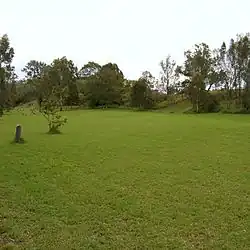 In 1919 a farmhouse was moved onto the northwest end of the site (outside the Queensland heritage register boundary), near where Palmer's inn stood, but it has been since removed, along with its outbuildings. Cane farming on the pasture that lies to the northwest of the current parkland has resulted in a long mound running parallel to, and to the east of, Queen Street. A Maryborough City Council sewerage treatment plant was built near the location of Aldridge's inn, but was removed by 1987. A long thin mound running through the pasture parallel to, and to the west of, Queen Street may be related to this. The site of the plant's tank was the circular hollow between the sites of the first and second of Aldridge's inns. The stone and concrete jetty near the mouth of Muddy Creek is close to the alignment of Furber's wharf, but was built for the STP outfall pipe.[1]