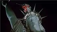Subsequently, as the three chorus girls explain, Audrey II buds became a worldwide craze. Fueled by the greed of their owners who provided them with blood, the Audrey II buds grew into an army of monstrous plants that began to take over the Earth. Giant Audrey II plants are shown toppling buildings, destroying cities, and eating people. Moreover, the United States Army fights the buds as they ascend the Statue of Liberty and Audrey II bursts through the movie screen, lunging at the audience ("Finale (Don't Feed the Plants)").[4]