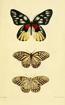 Orinoma damaris with Delias acalis in George Robert Gray's 1846 Descriptions and Figures of Some New Lepidopterous Insects Chiefly from Nepal