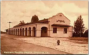 Oroville is a former train station in Oroville, California.[1] The building was constructed in 1910 as the town's stop along the Western Pacific Railroad Feather River Route. The railroad discontinued their passenger trains in 1970, leaving Oroville without rail services. The Chico Electric Railway had built an electric interurban railway line to the town with a route down High Street and its own depot two blocks west of the Western Pacific's.