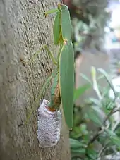 - ↑ Photo of O. novaezealandiae female creating ootheca and discussion of Miomantis caffra