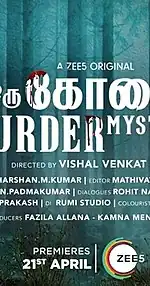 Oru Kodai Murder Mystery (transl. A summer murder mystery) is a thrilling whodunit directed by Vishal Venkat, known for his work on Sila Nerangalil Sila Manidhargal.[1][2] Produced by Fazila Allana-Kamna Menezes under Sol Production,[3] the series stars an ensemble cast including Abhirami,[4] Akash, Aishwarya,Nikhil Nair,Raghav, John, Namrita, Abitha, Frankin, and Sylvan in pivotal roles.[5] The series premiered on ZEE5 on 21 April 2023.[1]