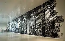 Oscar Oiwa was born in São Paulo, Brazil, son of Japanese immigrants. He received his B.F.A. (1989) from the School of Architecture and Urbanism, São Paulo University. Oiwa was influenced by comic books, art, and magazines throughout his youth, as well as the urban environment of his birthplace.[1] He experienced contemporary art during this time exploring the local art scene in São Paulo in nearby galleries and became an assistant at the São Paulo Art Biennial during his college years. Oiwa held his first solo exhibition while he was still in college and soon after participated in the 21st São Paulo Art Biennial (1991).[2] Throughout his career, he has participated in art globally, beginning in the city of his birth, then relocating to Tokyo in 1991 after graduating from university. After ten years in Japan, interrupted by a year spent in London in 1995, he moved to New York City in 2002 and has since made the city his base of operations.[3] Over his career, Oiwa's oeuvre encompasses everything from tradition oil paintings, texts, and art objects to interactive immersive art, experimental VR project, fictional narrative-based installations, public art, and book production.