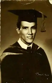 He went on to study law as a scholar of Far Eastern University, graduating with a law degree in 1947 and passing the Philippine Bar Examination in 1948.