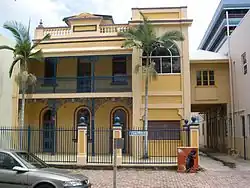 In 1901, the property was leased by the Commercial Travellers Association who established a club in the building. This may have been the period when the two storey verandah extension was added, as in the 1890s a small shop occupied that section of the block, but in a view of the area taken in 1906, the shop has gone and the verandah can clearly be seen. It had arches and a cast iron valance matching the front of the building and may well have also been designed by Smith and Sons. If there had been any intention of constructing a small terrace, it had been abandoned at this point. The club only lasted in the building for a few years and in 1906 the building was again occupied by a medical man, Dr Stuart Burnie. In 1910 it was purchased by Jane McWilliam. The medical association continued as she rented the property to Dr DEA Buchanan, later well known as the superintendent of the hospital at Rockhampton.[1]