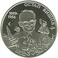 Pavlo Mykhailovych Hubenko[1] (Ukrainian: Павло Михайлович Губенко; 13 November [O.S. 1 November] 1889 – 28 September 1956), better known by the literary psuedonym of Ostap Vyshnia, was a Ukrainian writer, humourist, satirist, and medical official (feldsher). Nicknamed by critics as the Ukrainian Mark Twain and the Ukrainian Printing King; His fame was said to have competed in early Soviet Ukraine with only Taras Shevchenko and Vladimir Lenin.[2]
