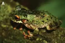 - 1 2 3 Robert Reynolds, Marinus Hoogmoed, Ross MacCulloch, Philippe Gaucher (2004). "Osteocephalus helenae". IUCN Red List of Threatened Species. 2004: e.T55503A11318891. doi:10.2305/IUCN.UK.2004.RLTS.T55503A11318891.en. Retrieved 16 November 2021.