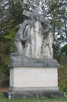 The cemetery building on St.-Martins-Platz was constructed between 1894 and 1900 to plans by Hans Grässel. A monumental cupola painting by Josef Guntermann was added at the same time (it was destroyed in World War II). At this time the Ostfriedhof was extended to form one of the great cemeteries of the then rapidly expanding city of Munich. A feature of the construction was the arcaded vaults built to form a courtyard surrounding rows of graves.[1]