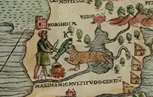 Otter fishing was known in Europe from as early as the 16th century. The Scandinavians trained otters for catching trout. Olaus Magnus, the Archbishop of Uppsala, published a tome in 1555, De Gentibus Septentrionalibus (On Northern Peoples), which includes a sketch of a fishing otter.[3] One of the motifs of Magnus's 1539 map of Scandinavia, Carta marina, is an otter fetching a fish for its master, who is ready with a knife and a cooking vessel on the fire.[4]
