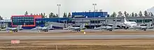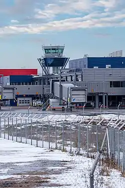 Oulu Airport (IATA: OUL, ICAO: EFOU; Finnish: Oulun lentoasema, Swedish: Uleåborgs flygplats) is located in Oulu, Finland, 5.7 NM (10.6 km; 6.6 mi) south-west[2] of the city centre. The airport is the third busiest airport in Finland after Helsinki-Vantaa and Rovaniemi airport, as measured by the number of passengers. There are around 10 daily flights to Helsinki. Oulu Airport is also extensively used by the Finnish Air Force for training purposes and the managing body of the airport is Finavia. Oulu Airport has offered free wireless network access for passengers since May 2007.[3]
