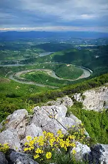 The gorge is a narrow of the West Morava's composite valley, a continuation of the Požega Depression on the west, while itself continuous into the Čačak-Kraljevo Depression on the east. The gorge is carved between the 985 meters high mountain of Ovčar on the south and 889 meters high Kablar on the north, thus gaining its name. The river meanders through the gorge for 15 kilometers. Epigenetic in nature, the Ovčar-Kablar Gorge was crucial for the genesis of the entire West Morava valley (West Pomoravlje).[4]