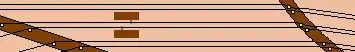 As in all harpsichords, the strings in the oval spinet are plucked by plectra suspended in jacks, thin vertical strips of wood. Each jack rises from the far end of its key, passes through a guiding register in the soundboard, and terminates adjacent to its assigned string, close enough for the bit of quill held by the jack - the plectrum - to pluck the string. In the diagram above, keys labeled with aqua dots lift the jacks that pass through the slots shown in aqua, and keys labeled in maroon control jacks passing through slots labeled with the same color.