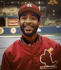 On December 10, 1981, the Padres traded Smith, Steve Mura, and a player to be named later to the Cardinals for Templeton, Sixto Lezcano and a player to be named later. The teams completed the trade on February 19, 1982, with the Padres sending Al Olmsted to the Cardinals, and St. Louis sending Luis DeLeon to the Padres.[47][48] Herzog believed Smith could improve his offensive production by hitting more ground balls, and subsequently created a motivational tool designed to help Smith concentrate on that task.[49] Approaching Smith one day during spring training, Herzog said, "Every time you hit a fly ball, you owe me a buck. Every time you hit a ground ball, I owe you a buck. We'll keep that going all year."[50] Smith agreed to the wager, and by the end of the season had won close to $300 from Herzog.[50] As the 1982 season got underway, Herzog's newly assembled team won 12 games in a row during the month of April, and finished the season atop the National League East division.[51][52] Herzog would later say of Smith's contributions: "If he saved two runs a game on defense, which he did many a night, it seemed to me that was just as valuable to the team as a player who drove in two runs a game on offense."[53]