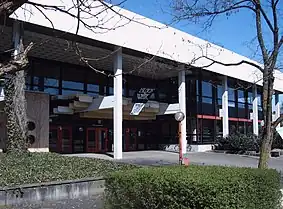 Entrance to lecture hall building containing HS1, the largest lecture hall of the university