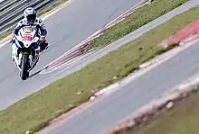 He was the 2006 champion of the USGPRU 125GP Championship, and has also competed in his homeland in the USGPRU 250GP Championship and AMA Pro Daytona Sportbike Championship, plus the Spanish 125GP Championship. 2012 was a fragmented season, but included two major race wins—the British Superstock 1000 race at Donington Park and the British Supersport Championship round at Assen. For 2013 he was signed to ride in the British Superbike Championship for Tyco Suzuki.[2] Since 2014 he participates full-time in the Supersport World Championship, initially with the Kawasaki Intermoto Ponyexpres team. Since the 2015 Portuguese round, Jacobsen switched to the CORE" Motorsport Thailand on a Honda. In August 2015, in the Malaysian round, Jacobsen became the first American to take a pole position and a win in the Supersport World Championship.