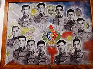 In 1982, 357 cadets entered the Philippine Military Academy in Baguio; only 128[lower-alpha 1] managed to graduate in 1986.[10] The class valedictorian (ranking first in the class) was Gilbert Gapay, the class baron (immediate assistant of the commandant) and ranking second was Rozzano Briguez, and the class goat (lowest ranking in the class) was Arthur Biyo.[10][11]