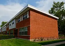 The Pacesetter Gardens Historic District is a historic district encompassing twelve townhouses along South Lowe Avenue in Riverdale, Illinois. The townhouses were built in 1960 by Harry J. Quinn, a developer who constructed and advocated for multi-family housing. Prior to 1960, Riverdale was mainly a community of single-family homes; Pacesetter Gardens and another nearby development by Quinn diversified the city's housing and made it easier for lower-income residents to live there. Quinn, who was also an architect, designed the buildings, which feature simple exteriors with box bay windows and a horizontal emphasis. Ten of the twelve townhouses have eight units, while the remaining two have four and six respectively. Quinn planned each unit according to minimum house design, a technique popular with housing reformers that emphasized compactness and eliminated less essential rooms such as hallways and dining rooms.[2]