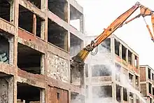 On April 7, 2022, Wayne County Circuit Court Judge Brian Sullivan ordered the demolition of the Packard auto plant in Detroit, finding that it had become a public nuisance.[35][36] The city began a search for contractors in May 2022.[37] In late July 2022, Detroit City Council approved a nearly $1.7 million contract for the demolition of a portion of the Packard Plant.[33] On October 27, 2022, demolition began on building 21 of the northern complex. Demolition finished by the end of December; however, some remnants remained. On January 24, 2023, the city began demolishing a second portion of the plant, building 28, of the southern complex. By the end of March, demolition of building 28 was successful, and all rubble was transported away from the site. However, by early April, it was revealed that the city halted all demolition operations at the Packard Plant, including the (then) ongoing demolition of building 21. The absentee owner was able to pay their property taxes before the deadline came, which allowed them to secure their ownership of the privately owned sections of the Packard Plant. As of early April, new "NO TRESSPASSING/PRIVATELY OWNED" signs have been posted at every privately owned parcel. The city of Detroit may not have the rights to proceed with demolition anymore. The city stated that they will save some buildings of the Packard Plant in order to preserve history but will continue to demolish other portions of the plant throughout 2023. [38]