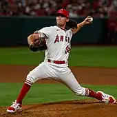 On August 4, 2021, the Angels selected Naughton's contract and promoted him to the major leagues.[26] At the time of his promotion, he had a 5.34 ERA over 55+2⁄3 innings pitched between Rocket City and Salt Lake.[27] On August 8, he made his major league debut in relief at Dodger Stadium against the Los Angeles Dodgers, giving up one run, one hit, and two walks over one inning.[28] On September 1, 2021, against the New York Yankees, Naughton made his first career start, pitching 3+2⁄3 innings, allowing three runs and striking out two.[29] Naughton finished the 2021 season with the Angels appearing in seven games (five starts) in which he went 0–4 with a 6.35 ERA, 14 walks, and 12 strikeouts over 22+2⁄3 innings.[30]