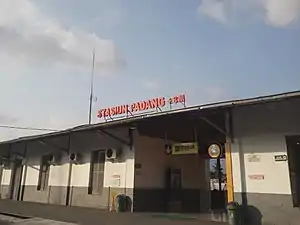 Padang Station (PD) is a railway station of the Pulau Aie–Padang Panjang railway and Teluk Bayur–Padang railway located at Jl. Stasiun No. 1, Simpang Haru, Eastern Padang, Padang, West Sumatra.