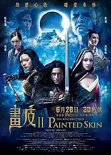 Painted Skin: The Resurrection is a 2012 Chinese fantasy action film[2] directed by Wuershan, starring Zhao Wei, Chen Kun, Zhou Xun, Yang Mi, Feng Shaofeng, Kris Phillips and Chen Tingjia. The film reunites most of the original cast of the 2008 film Painted Skin.,[4] acting as a sequel to the original film in a new storyline and characters with some degrees of connection.