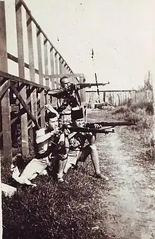 During the interwar period, as part of its policy of supporting a Jewish state in Palestine in order to facilitate mass Jewish emigration from its territory, the Second Polish Republic provided military training and weapons to Zionist paramilitary groups, including Haganah.[8] Envoys from Haganah headed by Yehuda Arazi received dozens of shipments with military supplies, including 2750 Mauser rifles, 225 RKM machine guns, 10,000 hand grenades, two million bullets for rifles and machine guns, and a large number of pistols with ammunition. The British exerted heavy pressure on the Polish government to stop these deliveries. One of the last purchases of Arazi were two airplanes and two gliders. When he fled Poland to France, around 500 rifles were abandoned in a Warsaw warehouse.[9] Members of the Haganah were also trained in a military camp in Rembertow along with Betar members between the years 1931 and 1937; it is estimated that training courses at the camp were attended by around 8,000 to 10,000 participants during their existence.[10]