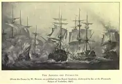The Armada off Plymouth (From the fresco by W. Brewer destroyed by fire at the Plymouth Palace of Varieties, 1898.)