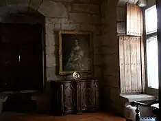 In 1464, the title of Count of Guimarães is given to Fernando II, son of the Duke of Braganza, by King Afonso V (which was later renovated in 1475). Three years later, on 1 April 1478, the 2nd Duke of Branganza, died, followed two years later by the death of the widow of the 1st Duke of Braganza: the titles and vast land holdings passed on to Fernando II. During the 16th century there was a move towards monumental construction, increasing at the time the main floor over the principal gate.[2] This was a period when the second Duke of Braganza, Fernando who pushed for a symmetrical design and layout.[2][5] The functional organization of the spaces, dates from these renovations and included: the first floor, its servants' quarters and support rooms, and the second floor, that was devoted to the residence of the nobles, structured around the chapel and divided into individual spaces for the Duke and Duchess.[2] But, Fernando's move to Vila Viçosa during the 16th century, meant that the residence was closed for long periods.[2] Most records on the buildings construction include the fact that the Palace was incomplete at the time that it was abandoned: Father Torcato Peixoto de Azevedo indicated that the residence had never really been completed in his Memórias (1692); which was also complemented by Father António de Carvalho da Costa (1706), who mentioned the same in his work Corografia Portuguesa; and Father Manuel da Mialhada also referred to the incomplete Palace of the Dukes.[1] Transcribed in 1900 by Albano Bellino, a 29 December 1761 document indicated the plan and elevation of the Palace, without referencing the central courtyard.[1]