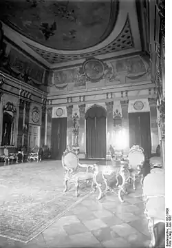 Among the residents of the first group are the respective holders of the office of the Reich President. In addition to the Reich President Ebert and von Hindenburg, the head of the head of state's office, State Secretary Otto Meissner, was constantly at home in the palace from 1920 to 1939. There were also the families of these three men. During Ebert's presidency, his wife and two sons lived in the palace, while Hindenburg brought his son Oskar and his daughter-in-law Margarete and the couple's three children, of whom the youngest was born in the palace with. Meissner's household consisted of his wife and two children, including the son Hans-Otto Meissner. Other people who not only worked in the palace, but also had their own apartments there, were the house inspector (chief of domestic staff) Wilhelm Tappe, Hindenburg's personal servant Oskar Putz (called "Karl" um) To avoid confusion with the son of the same name of the head of state) and the presidential chauffeur Otto Demant and the chauffeur of the president's office Kurt Nehls. [7]