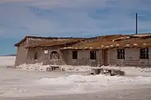The first hotel was built in 1993–1995[3][4] out of salt blocks in the middle of the Salar de Uyuni,[5][6] and soon became a popular tourist destination.[7] It had 12 double rooms, a common bathroom, and no shower.[5] Its location in the center of a desert produced sanitary problems, as most waste had to be collected manually. Mismanagement caused serious environmental pollution and the hotel had to be dismantled in 2002.[8][9]