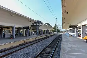 Palaiofarsalos railway station (Greek: Σιδηροδρομικός Σταθμός Παλαιοφαρσάλου, romanized: Sidirodromikós Stathmós Palaiofarsálou) is a railway station near Farsala in Larissa regional unit, Greece. It is located in the village Stavros, 12 kilometres (7.5 mi) west of Farsala. It is situated at the junction of the main Piraeus–Platy railway and the branch line[4] to Trikala and Kalambaka. It is served by intercity trains between Athens and Thessaloniki and by local trains to Kalambaka.[5]