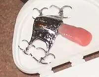 A palatal lift prosthesis is a prosthesis that addresses a condition referred to as palatopharyngeal incompetence. Palatopharyngeal incompetence broadly refers to a muscular inability to sufficiently close the port between the nasopharynx and oropharynx during speech and/or swallowing. An inability to adequately close the palatopharyngeal port during speech results in hypernasalance that, depending upon its severity, can render speakers difficult to understand or unintelligible.[1] The potential for compromised intelligibility secondary to hypernasalance is underscored when consideration is given to the fact that only three English language phonemes – /m/, /n/, and /ng/ – are pronounced with an open palatopharyngeal port.[2] Furthermore, an impaired ability to effect a closure of the palatopharyngeal port while swallowing can result in the nasopharyngeal regurgitation of liquid or solid boluses.