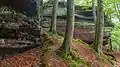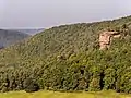The Palatinate Forest Nature Park (German: Naturpark Pfälzerwald) lies in the south of Rhineland-Palatinate in Germany and borders on France. The nature park covers an area of 177,100 hectares (684 sq mi) and some 76% of its area is under the woods of the Palatinate Forest, the largest contiguous forest region in Germany. Together with parts of northern Alsace and Lorraine, it forms the Palatinate Forest-North Vosges Biosphere Reserve and has an impressive Bunter sandstone landscape.