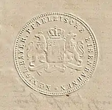 Embossed seal of the Palatine Railways, on an 1874 letter