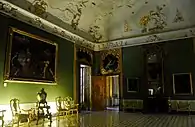 • Salotto Verde or Salottino Barocco, recorded as housing the Van Dyck in 1625[3] and thus probably the building's original private chapel,[2] with the only surviving fresco by Gaspare Serenari, showing St Dacius Presented to the Virgin Mary, surrounded by Serpotti-style stuccowork.