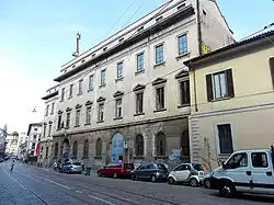 At first it was a convent (in what remains of the monastery courtyard, now the reading garden of the local public library, there are still centenary fig and medlar trees under which one can read and study) and the beautiful 16th-century inner courtyard. It enjoys a privileged history in the Milanese scene and was the scene of many important events It later became an important college where many prominent figures of Catholic culture taught and where Emilio De Marchi also taught two years after graduating in the last century.[3] It was also the scene of the revolutionary uprisings of the Five Days of Milan, where students and professors united together in the name of freedom.[4] Having become a barracks and later a music school, recent agreements have been made between the Municipality of Milan, which will move its Municipal 1 offices there, and the Customs Authority. It is home to a library, a school and various city associations. It hosted during the pandemic the association that took in people living on the streets at night.[5] The building is owned by the public property of the Municipality of Milan; in spring 2022 it has been announced that it is scheduled to be refurbished.[6]