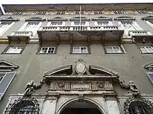 It was built from 1562 for Baldassarre Lomellini, banker to King Philip II of Spain, to a design by Giovanni Ponzello, «chamber architect» of Genoa and designer of Palazzo Tursi, belonging to Niccolò Grimaldi, Baldassarre's son-in-law. Andrea Semino frescoed its halls with Roman stories. Of the original 16th-century façade, only the white marble portal by Taddeo Carlone survives today, bearing the inscription 'venturi non immemor aevi'. Its original appearance can be seen in engravings by Rubens of 1622.[1]