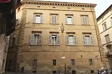 The Palazzo Chigi all Postierla, but sometimes referred also to as Chigi-Piccolomini or Piccolomini-Adami is a Renaissance style urban palace localized on Via del Capitano #1, corner Piazza Postierla, in the Terzo di Città, in the city of Siena, region of Tuscany, Italy. The palace is up the street from the Palazzo del Capitano del Popolo, Siena.