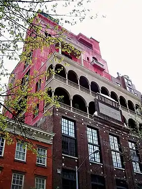 Palazzo Chupi at 360 West 11th Street between Washington and West Streets in the West Village section of the Greenwich Village neighborhood of Manhattan, New York City is a residential condominium building designed by artist Julian Schnabel in the style of a Venetian palazzo, built on top of a former horse stable. Schnabel uses the lower four floors, the former stable, as a studio.[1] They also contain a parking garage, art gallery space and swimming pool.[2]