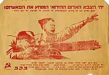 In 1923, at the party congress, a position of support was adopted in favour of the Arab national movement as a movement "opposed to British imperialism and denounced Zionism as a movement of the Jewish bourgeoisie allied to British imperialism", a move that won it membership of the Comintern.[3] The Party was also opposed to Zionist settlement in Palestine and to the Histadrut and its Jewish labor policy.[4]