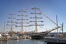 The tall ship Pallada (Russian: Паллада), designed by Polish naval architect Zygmunt Choreń, is a Russian 356.3 feet (108.6 m) long three-masted frigate. It is considered the world's fastest sailing ship, as it holds the world speed record of 18.7 knots in the Sail Training International largest and most prestigious Class A. There exists a claim that during the circumnavigation of 2007-2008, Pallada posted 18.8 knots, but this record still remains officially unrecognized.