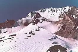Palmer Glacier is an extinct glacier on the south slopes of Mount Hood in the U.S. state of Oregon. With glacial ice movement having stopped in the mid 1980s, it is now considered a snowfield rather than an active glacier.[2] The former glacier, now snowfield, is situated at an elevation range of 9,300 to 6,200 feet (2,800 to 1,900 m), and was named for Joel Palmer, an Oregon pioneer. Palmer Glacier is the most well-known of the twelve glaciers on the mountain, despite no longer technically qualifying as a glacier, and is a popular destination for snowsports enthusiasts as it is the only US resort that consistently runs it's chairlifts from winter through summer.