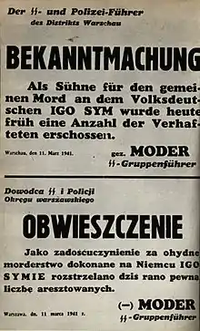 - ↑ Some of these photos were included in a brochure titled Totaler Terror. Polen am Marterpfahl ("Total terror. Poland at the torture stake"), which was published by the Polish Underground State in 1943. The brochure was written in German because German soldiers stationed in occupied Poland were its target.