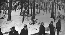 This was the last execution conducted in Palmiry in 1940 for which circumstances are at least partially known. However, during the postwar exhumation, three mass graves filled with 74, 28, and 24 corpses respectively, were found at the forest glade. It is certain that first two of them were filled and buried in the winter of 1940, while the third one was probably dug in the winter of 1940 or 1939.[42] Polish historians were not able to determine the circumstances of those massacres. According to Regina Domańska, about 27 prisoners of Pawiak were executed in Palmiry on 4 December 1940.[43] According to Maria Wardzyńska, up to 260 people could have been murdered in Palmiry in the winter of 1940.[44]
