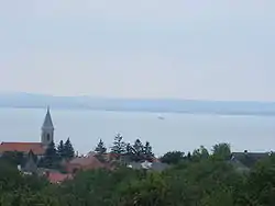 The vicinity of Lake Balaton affects the weather heavily, the local microclimate differs from the highlands': the village is sheltered from the wind, the weather is mild all year. The soil is characterized by clayey sand and red marl, along with red sandstone. In the woods one can find oak, beech, and pine, and in the gardens peach, apricot, almond, and – first of all – grape yield.